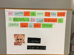 Els alumnes de P5 hem treballat aquests dies el significat de la Pau i una frase significativa relacionada amb el tema, hem estampat la nostre petjada per fer el camí de la pau per tota l’escola,hem conegut el número del nostre peu i hem fet una estadística, hem escoltat cançons que parlaven de molts valors, hem treballat el conte “Negros y blancos”, hem decorat el nostre colom de la pau, hem pintat mandales relacionades amb el tema, hem vist i reflexionat sobre diversos curts, hem fet dinàmiques relacionades amb diversos valors… I gràcies a la col.laboració de les famílies hem posat una pedra en el camí amb una paraula que ens ajudarà a conseguir la pau.A continuació, trobareu un recull de fotos de les diverses activitats, us convidem a que les mireu amb els vostres fills i filles i que us expliquin tot el que han viscut: