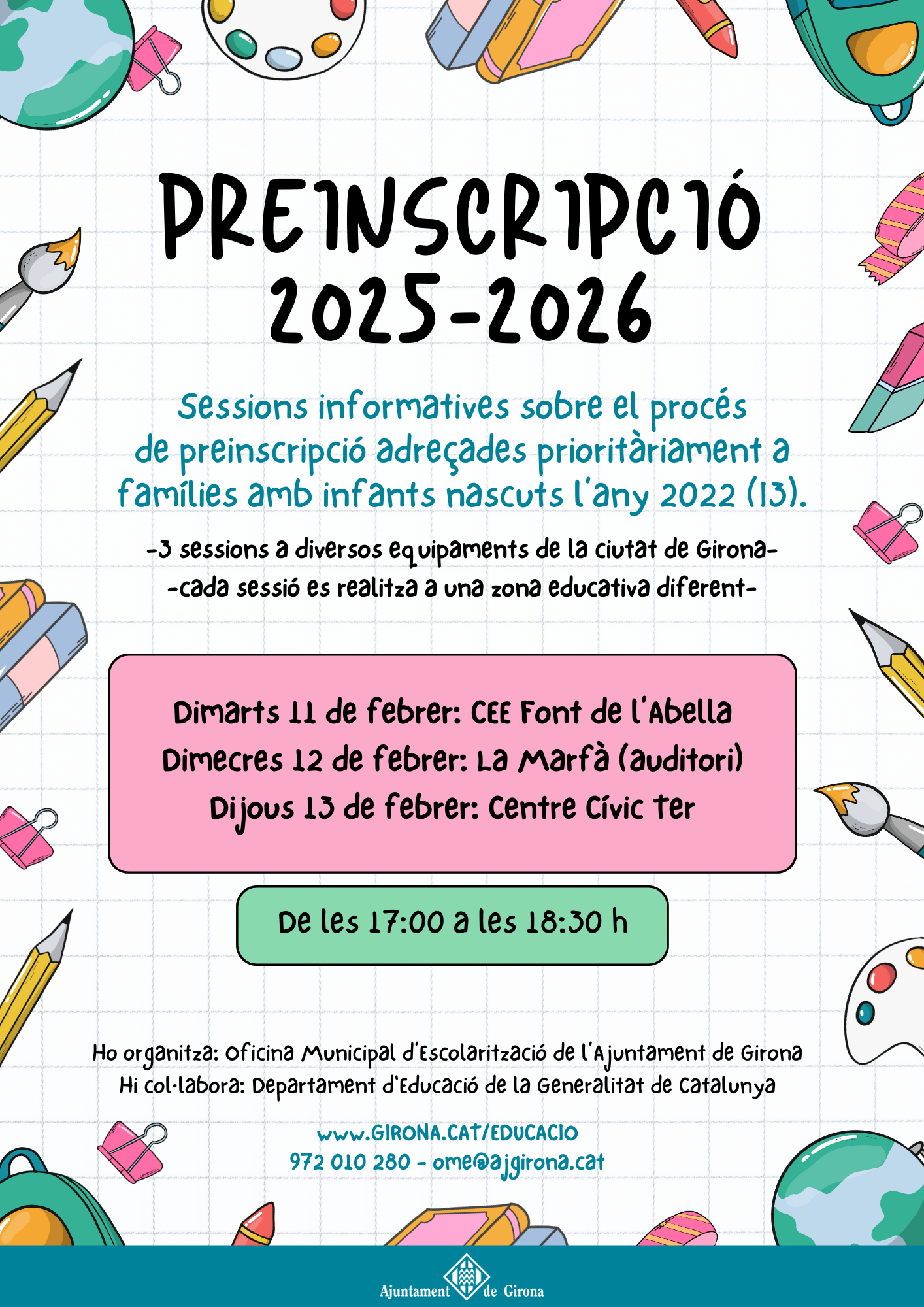 PREINSCRIPCIÓ 2026-2027: sessions informatives adreçades prioritàriament a famílies amb infants nascuts l’any 2023 (I3)