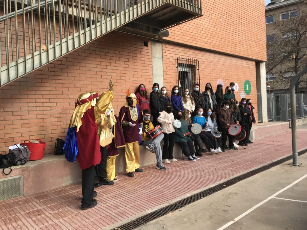 Aquest matí hem pogut donar la carta als patges de Ses Majestats Reials. Quins nervis i quanta emoció!! Han vingut acompanyats d’un grup de nois i noies de l’Institut Sobrequés que els acompanyaven al so de la música i han acabat l’acte cantant unes nadales. Moltíssimes gràcies!! Ens ha agradat molt que vinguéssiu.
