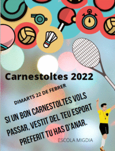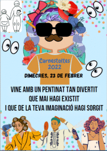 Carnaval 2022 Feu un comentari / Per admin / 17 de febrer de 2022 / General Portada L’alumnat de 6è ens acaba de fer arribar les consignes del REI CARNESTOLTES! Dilluns, dimarts i dimecres vindrem a l’escola seguint les consignes i dijous, celebrarem DIJOUS LLARDER.