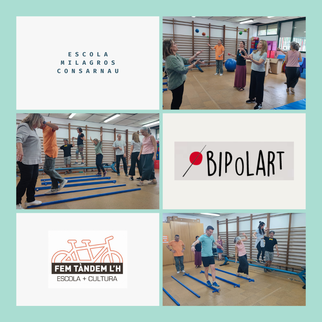 L’alumnat de 3r i 4t realitzarà durant gairebé tot el curs activitats de circ. Per fer-ho possible, Joselito i Javi del grup Pipol·Art van estar fent una sessió formativa per a tot l’equip docent de cicle mitjà i educació física.