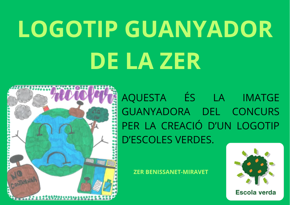 A partir de les votacions realitzades al novembre vam escollir un logotip que representarà el nostre projecte d’Escoles Verdes de la ZER. Aquest és el cartell que hem creat el comitè ambiental de l’escola de Miravet per fer-ne difusió:
