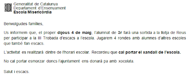CIRCULAR III TROBADA ESCOLAR D’ESCACS