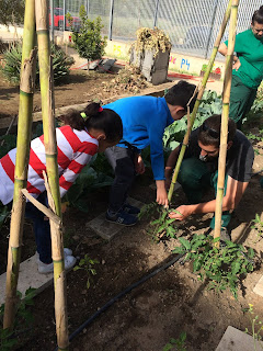 LA CLASSE DE P5 HEM ANAT A L’HORT A POSAR LES CANYES A LES TOMAQUERES!