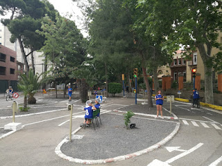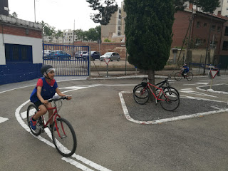 Els alumnes de cinquè han realitzat una activitat al circuit tancat de mobilitat de Reus, per tal de repassar les normes bàsiques i senyalització de les vies urbanes.