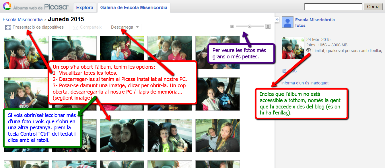 PICASA: Per descarregar una o més d’una fotografia d’un àlbum de Picasa del blog, segueix aquestes indicacions: