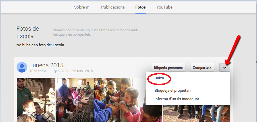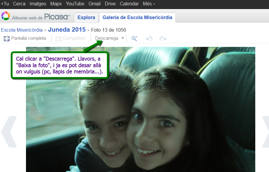 GOOGLE+: Per descarregar l’àlbum sencer, cal que tinguis un compte de correu electrònic associat a gmail (gmail, yahoo, xtec, …) i que siguis seguidor del Google+ de l’Escola Misericòrdia.