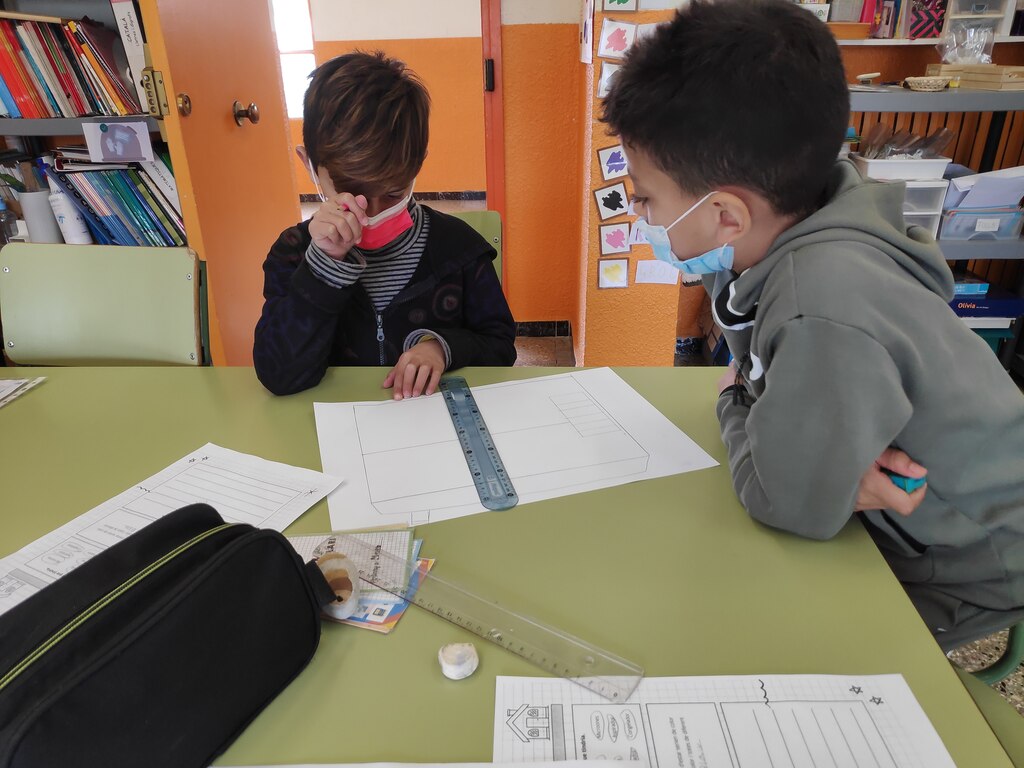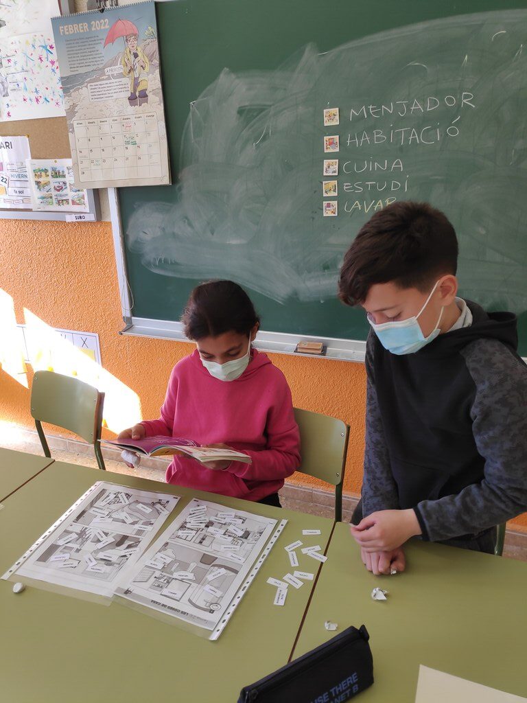 I per acabar, per parelles i trios vam elaborar el “Projecte de la nostra casa perfecta”, on havíem de descriure i detallar com seria la nostra casa ideal i dibuixar el plànol: què tindria, com s’organitzarien les habitacions, quins electrodomèstics i colors tindria,… per finalment, presentar-la als nostres companys i companyes.
