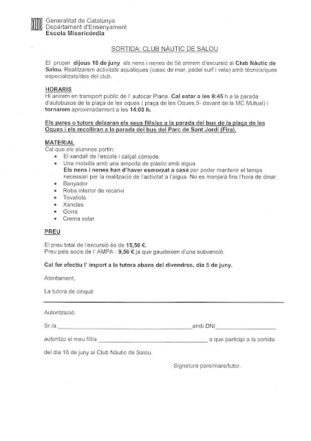 SORTIDA 5è: CLUB NÀUTIC – SALOU admin12/06/15 Hem penjat aquests videos per tal de conèixer quines activitats realitzarem el dijous 18.