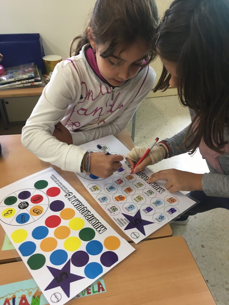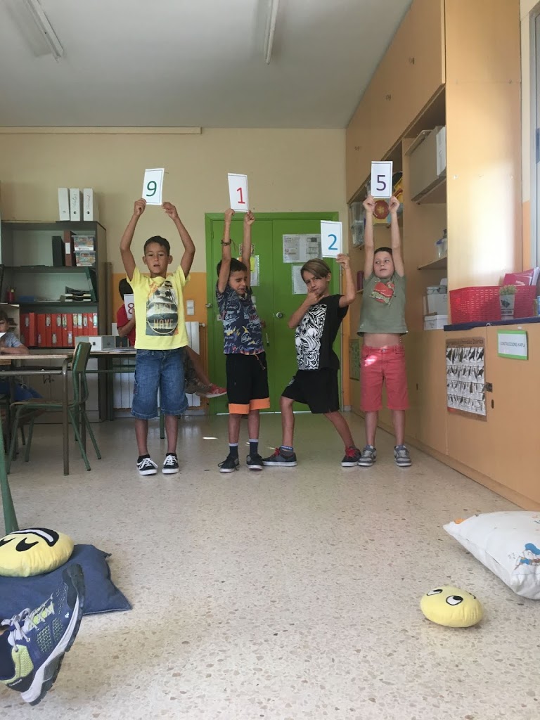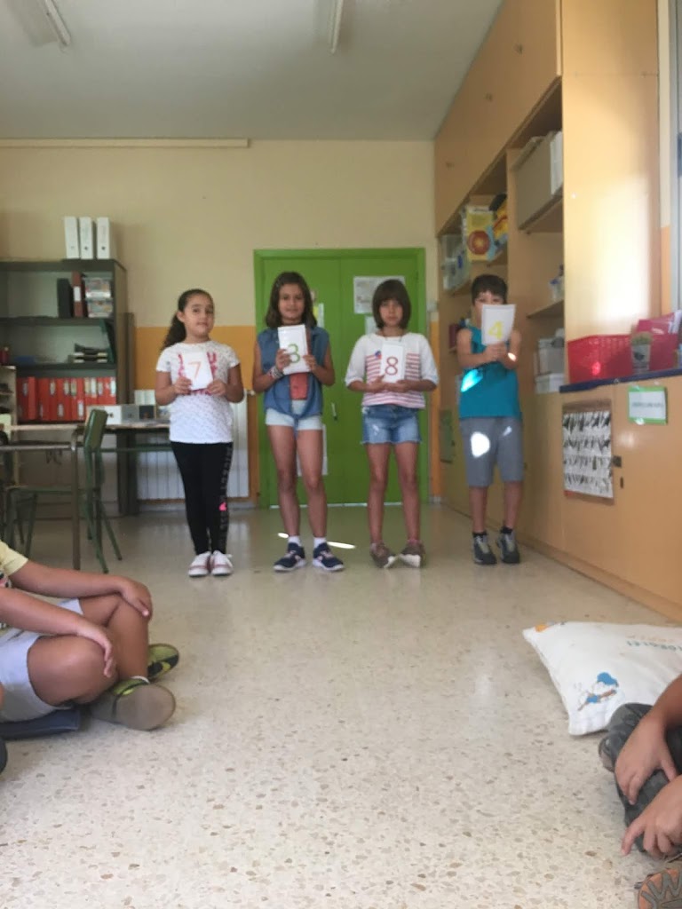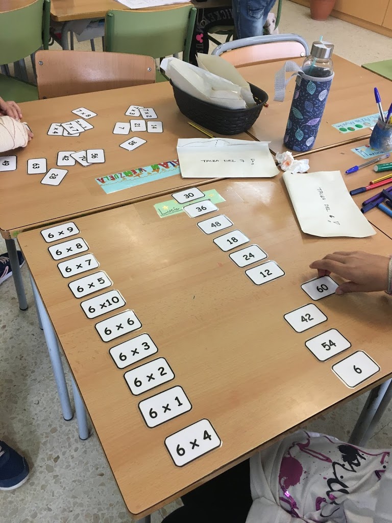 Els nens i les nenes de tercer estem jugant manipulativament amb les mates.
