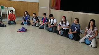 El 19 de abril, antes de empezar la semana cultural, hicimos un taller de percusión en la sala de Sant Marçal. Vino un chico con muchos tambores de origen africano. Nos enseño dos tipos: los de madera y los de metal. Nos lo pasamos muy bien. Fuimos todos los alumnos de primaria en grupos. En éstas fotos podéis ver cómo lo hicieron los alumnos de quinto y sexto.