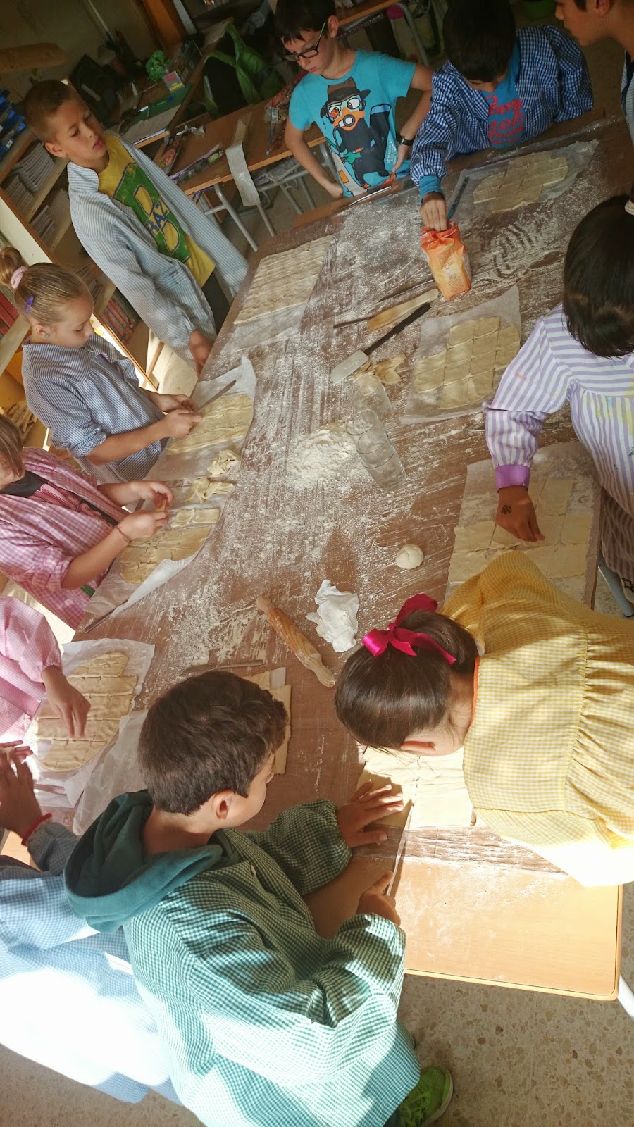 Primer de tot, quan la masa de pizza ja està descongelada la talles a trossos.