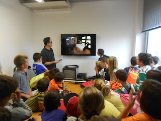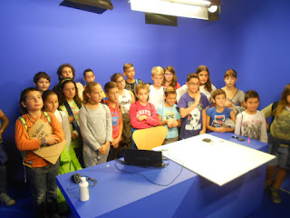 Un cop aconseguit, vam anar a visitar els platós de PTV a on ens van explicar les característiques principals tant de la ràdio com la televisió, ensenyant fotos de càmeres, fent-nos una xerrada (una mica avorrida i molta calorrrrr!!!) i el més divertit, visitar el plató de Televisió. El plató ens va sorprendre perquè la paret del plató era blava i a la imatge que apareixia en la pantalla canviava de color.