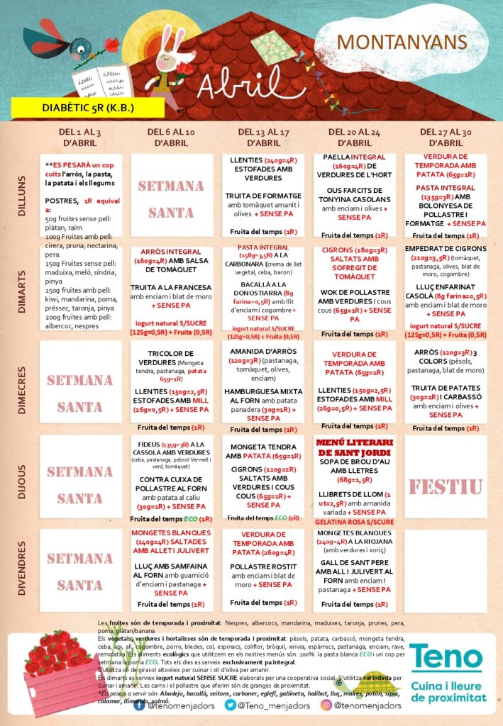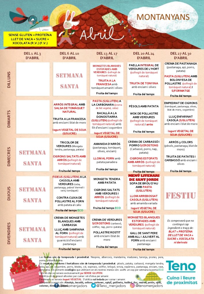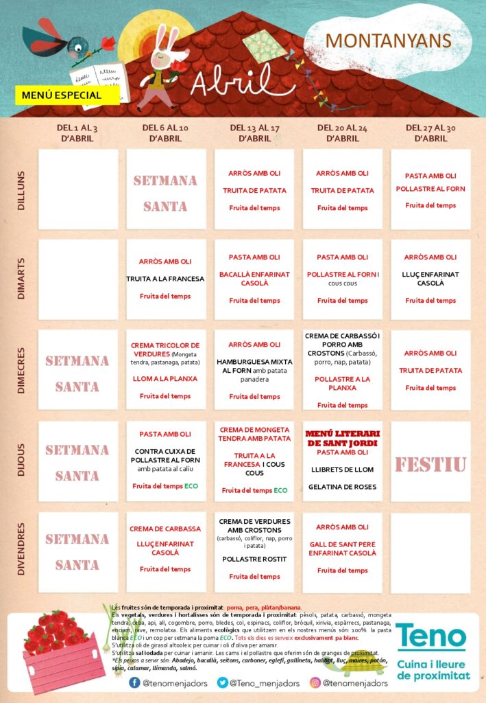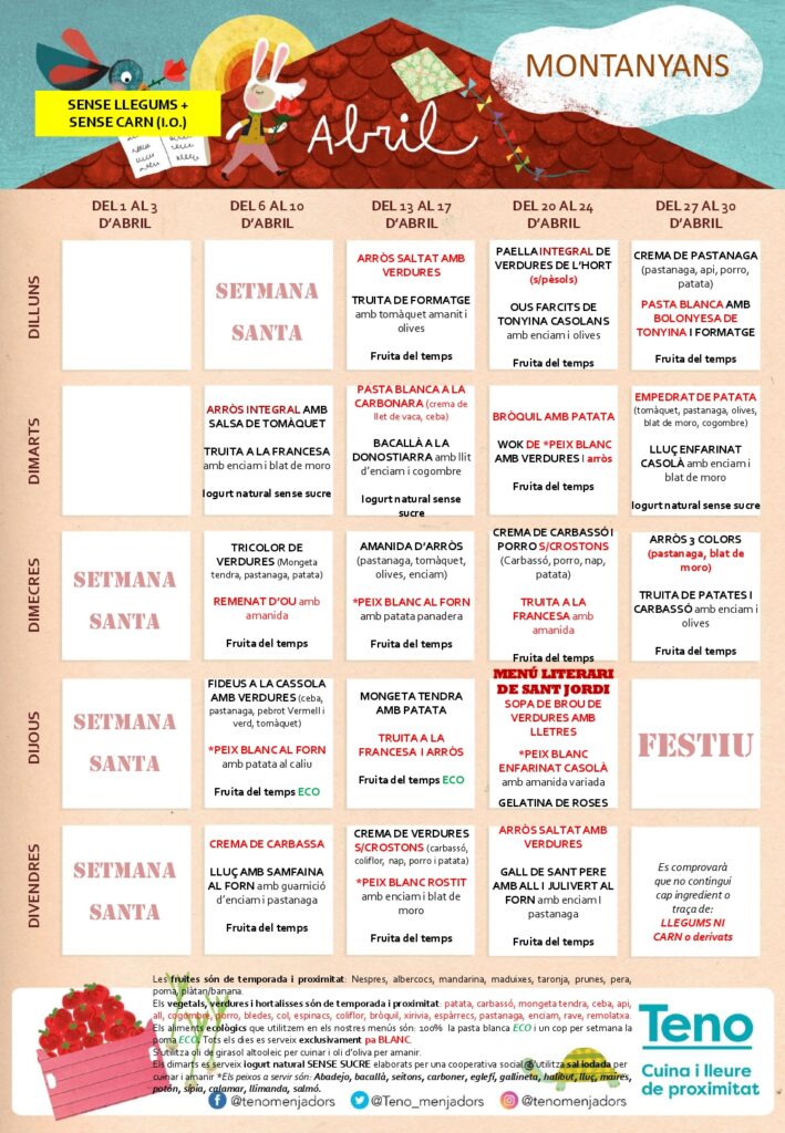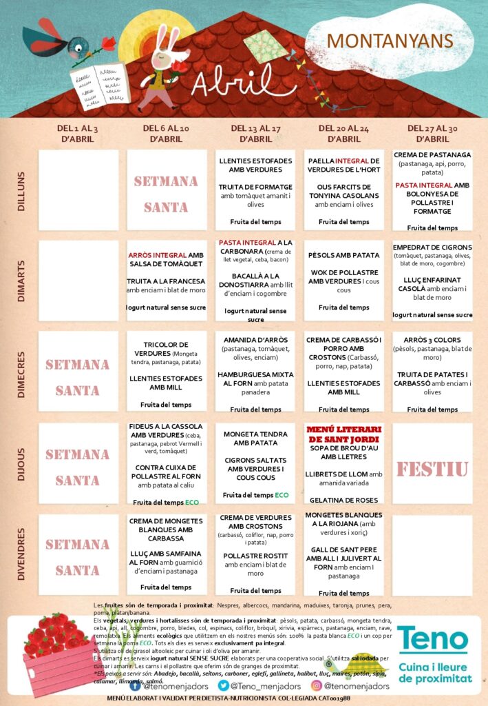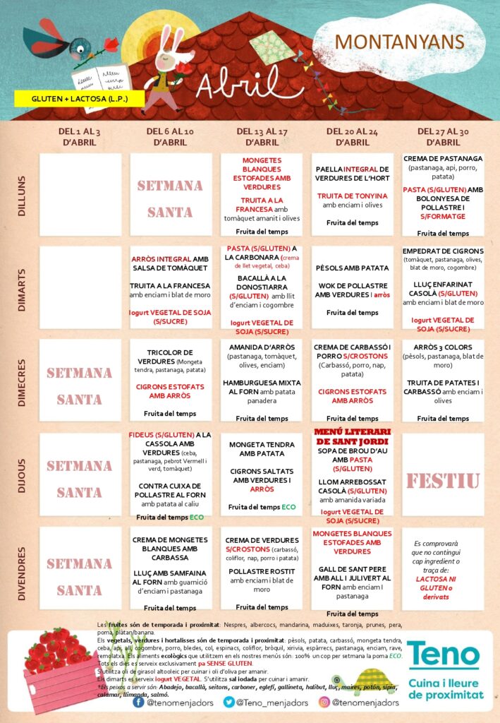 L’empresa encarregada del menjar i del monitoratge és TENO. El menjar és equilibrat i està dissenyat per un equip d’experts nutricionistes i basat en l’alimentació saludable a l’etapa escolar de l’agencia de salut pública de Catalunya (Guia d’alimentació).