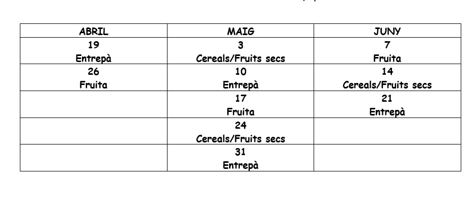 Esmorzars saludables dels tercer trimestre. Feu un comentari / Per administrador / 18 d'abril de 2022 / General Infantil Portada Últim calendari dels esmorzars saludables d’aquest curs!