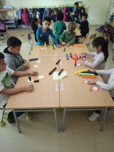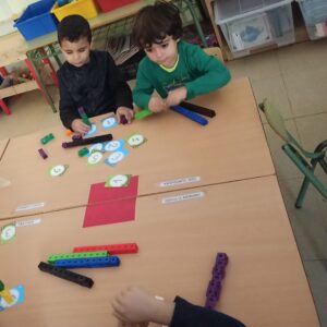 A la classe de P5 juguem i aprenem matemàtiques a través de la manipulació de materials. Amb ells aprenem a:
