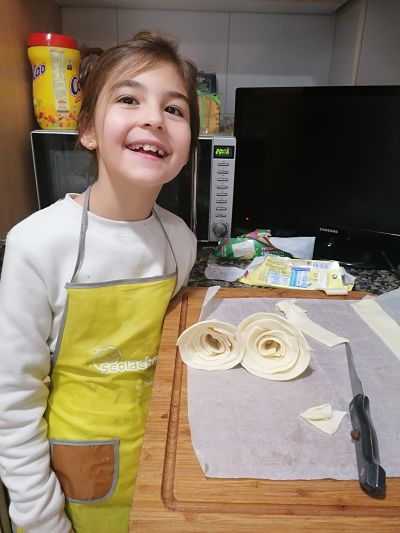 Per tal de celebrar, en la distància, la diada de Sant Jordi, les mestres de Cicle Mitjà, vam decidir proposar als nostres nens i nenes fer, a casa, un dels tallers que teníem preparats per fer a l’escola: el taller de cuina!