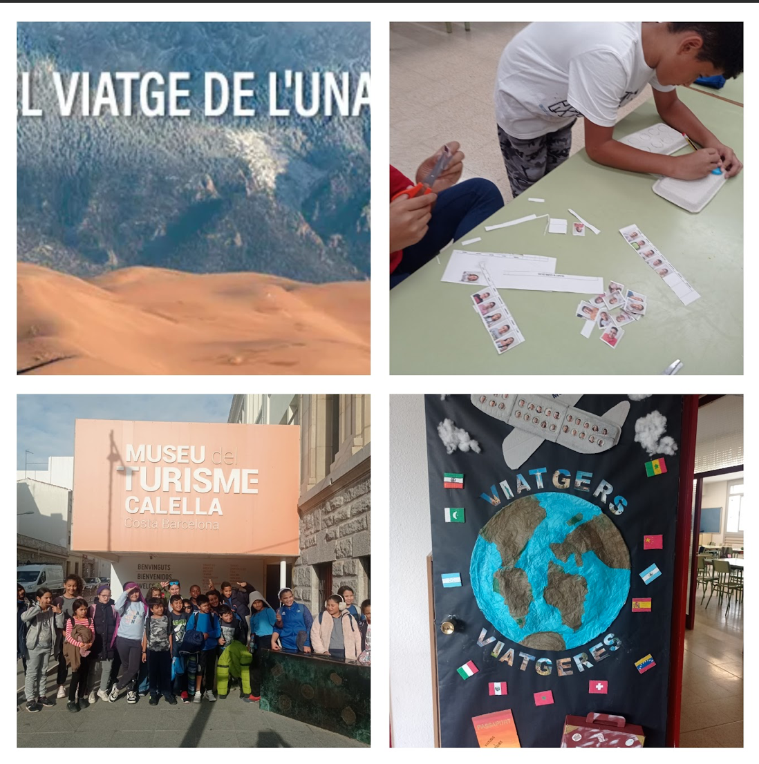Primer de tot, hem escollit un logotip dissenyat pels alumnes. Després entre tots hem decorat la porta de la classe, pensant els diferents elements que volíem plasmar; com els transports, el planeta terra amb els continents, les banderes dels països que representen a tot l’alumnat…Ho hem representat amb diverses tècniques artístiques.