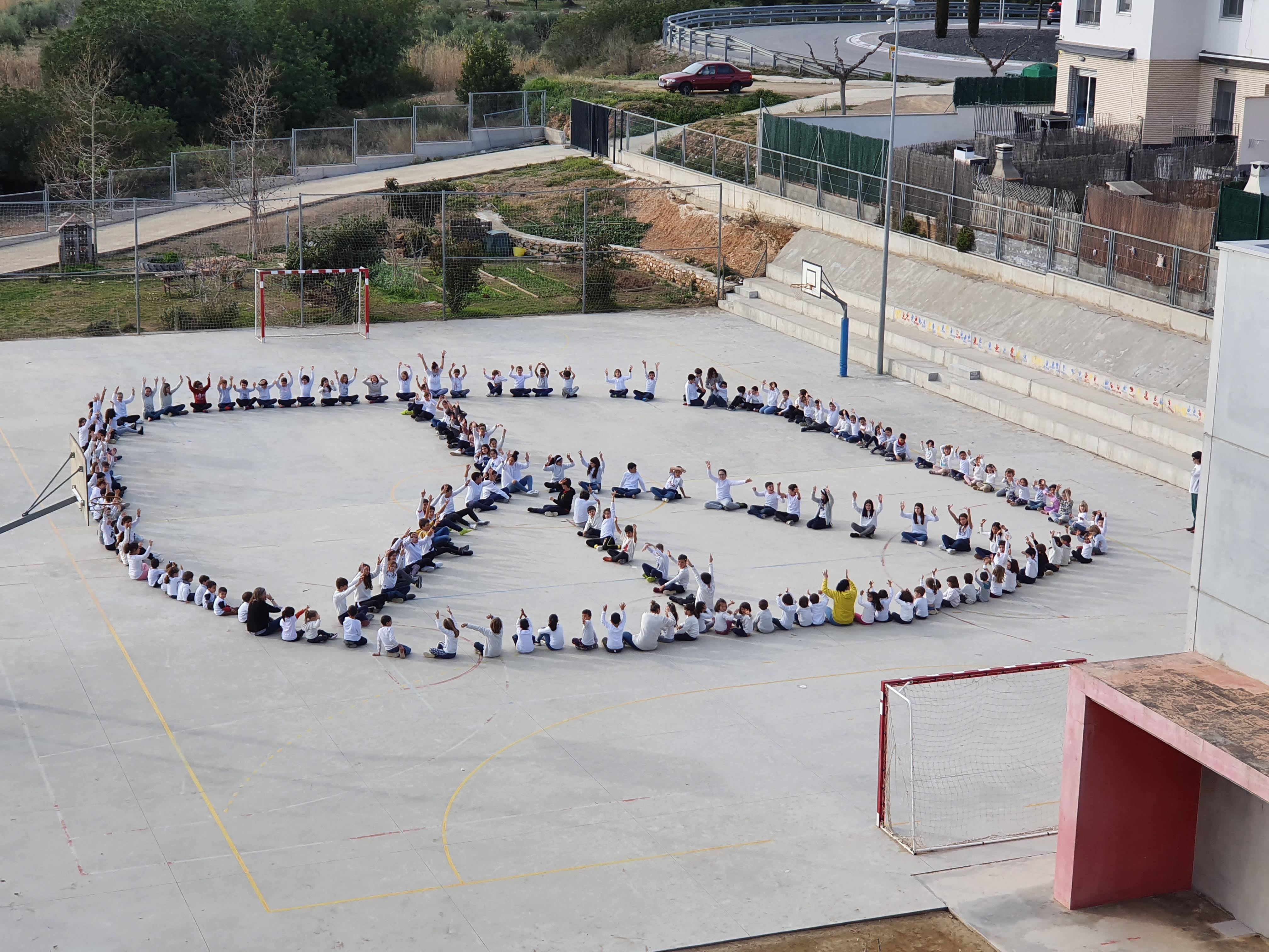 Durant el dia, a l’aula s’han fet activitats relacionades amb la pau i la no-violència. A la tarda, al gimnàs de l’escola, els alumnes de Cicle Mitjà han recitat poemes, hem cantat la cançó “Mirall de pau”, i finalment hem fet el símbol de la pau al pati de l’escola.