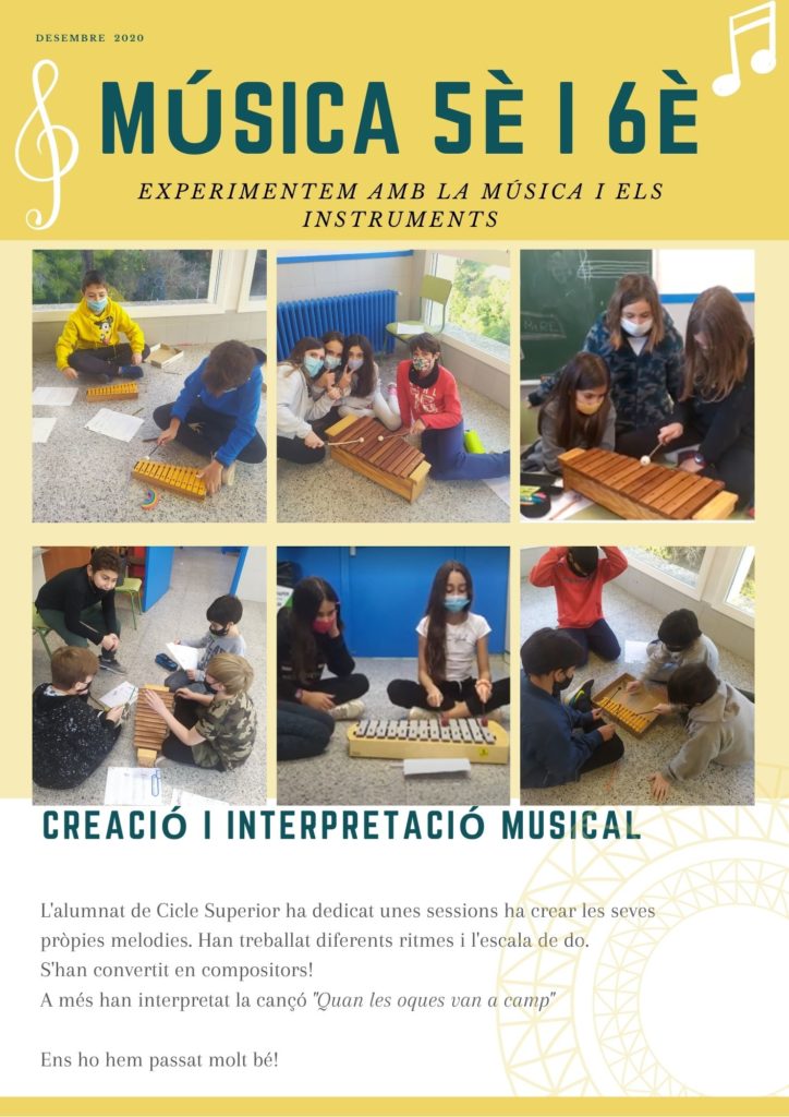 CREACIÓ I INTERPRETACIÓ MUSICAL A CICLE SUPERIOR admin15/12/20 Aquí trobareu un enllaç per veure algunes de les seves creacions: https://youtu.be/lRxingDYWh8