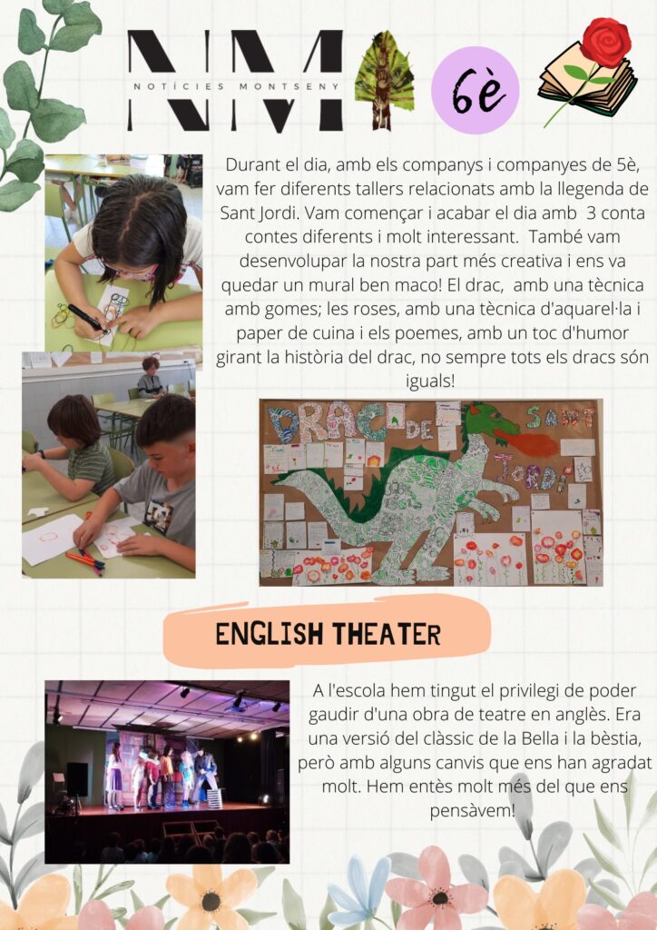 Notícies Montseny 6è: Projecte el nostre cos, Sant Jordi i the English theater! Sandra Benedicto05/05/23