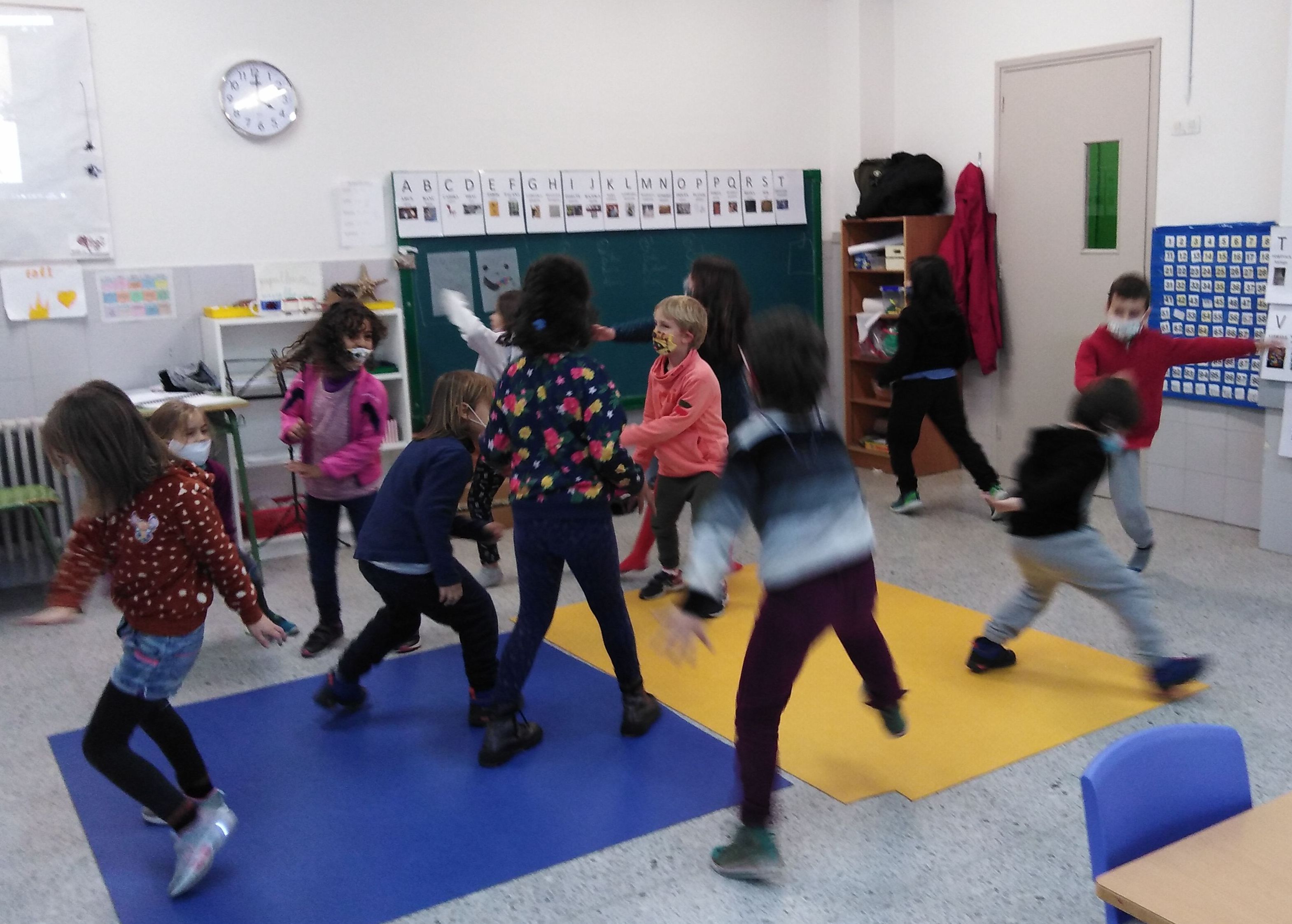 A les classes de música les mascaretes ens dificulten una mica l’activitat del cant, però el que no hem deixat de fer és ballar! Aquest trimestre estem preparant les danses per al Dansa Ara. No tenim la certesa de poder-lo fer de forma presencial, però el sol fet de ballar a la classe ja és motiu d’alegria! En aquestes fotos ens podeu veure practicant amb expressió corporal les Improvisations sur les folies d’Espagne, de Marin Marais.