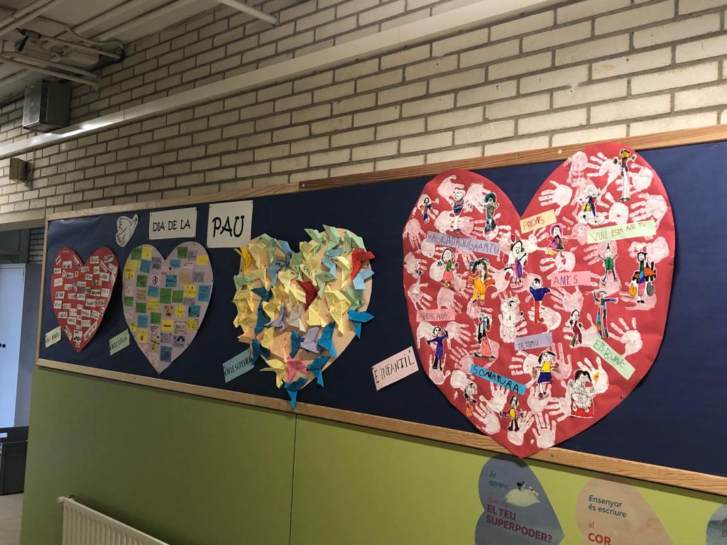 A l’escola hem celebrat plegats la DIADA ESCOLAR DE LA NO-VIOLÈNCIA I LA PAU. Al llarg de la setmana totes les classes hem elaborat uns missatges de Pau que formen uns grans cors.