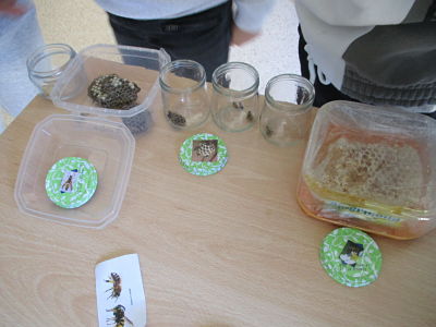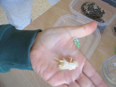 Un company de la classe ens ha portat l’esquelet d’un saltamartí, ruscs d’abelles i de vespes i fins i tot mel!!!!