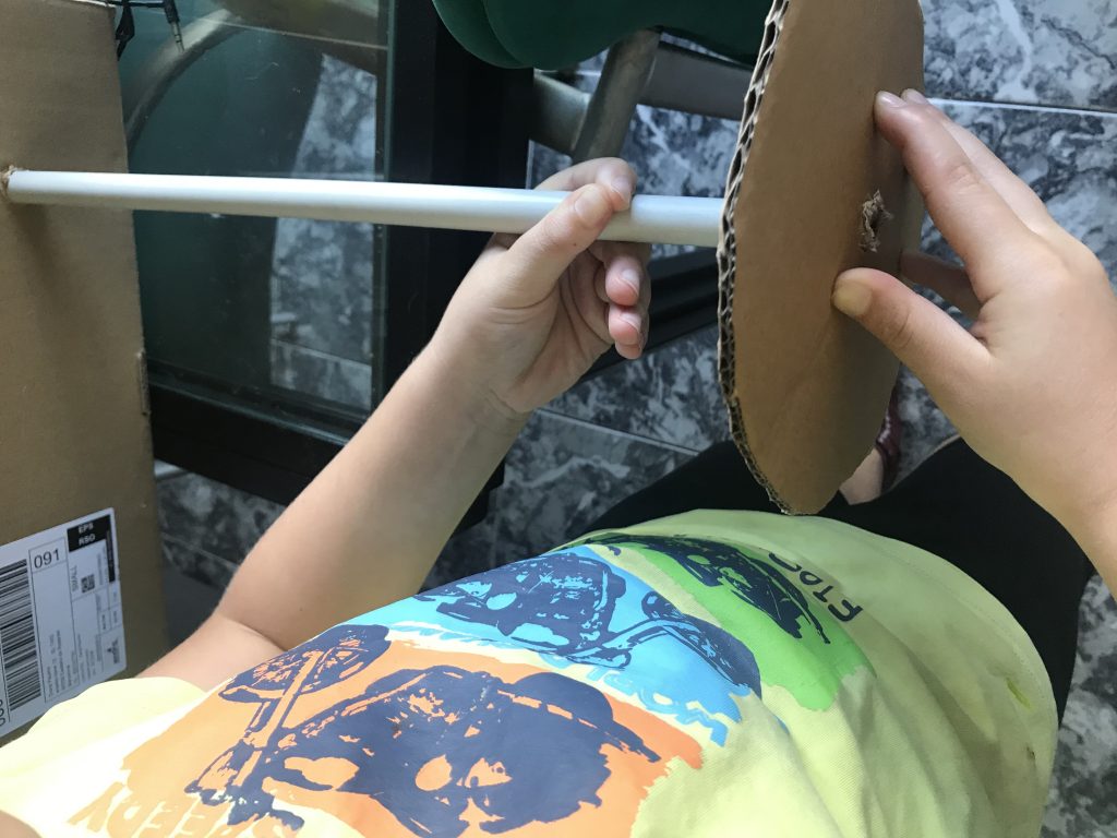 El David i la seva família s’han engrescat tant que a partir de màquines simples com la construcció d’un compàs i un tancament