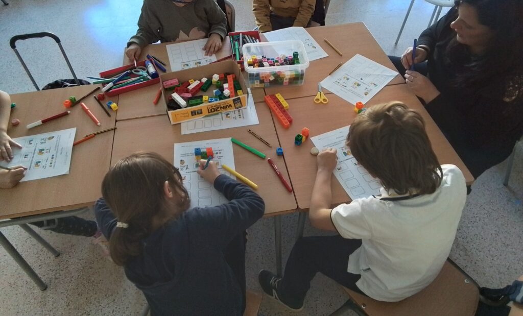 El dimecres 31 de gener hem iniciat les sessions de grups de treball de matemàtiques en família. Aquesta vegada hem comptat amb la col·laboració de dues mares: la Noelia i la Zaida, que ens han ajudat amb els 3 racons que havíem organitzat.