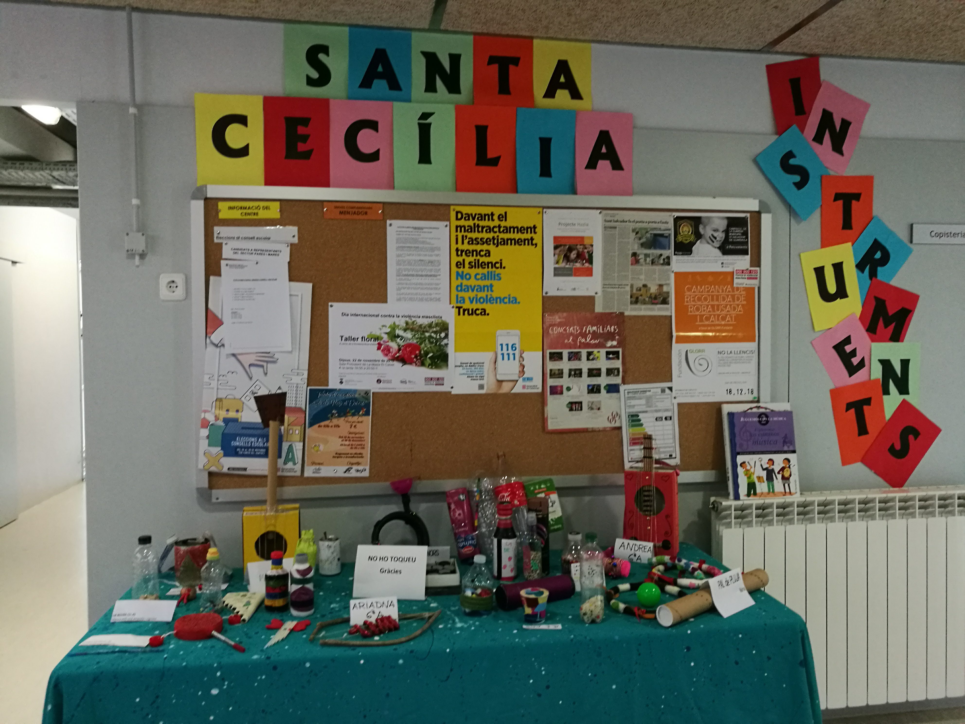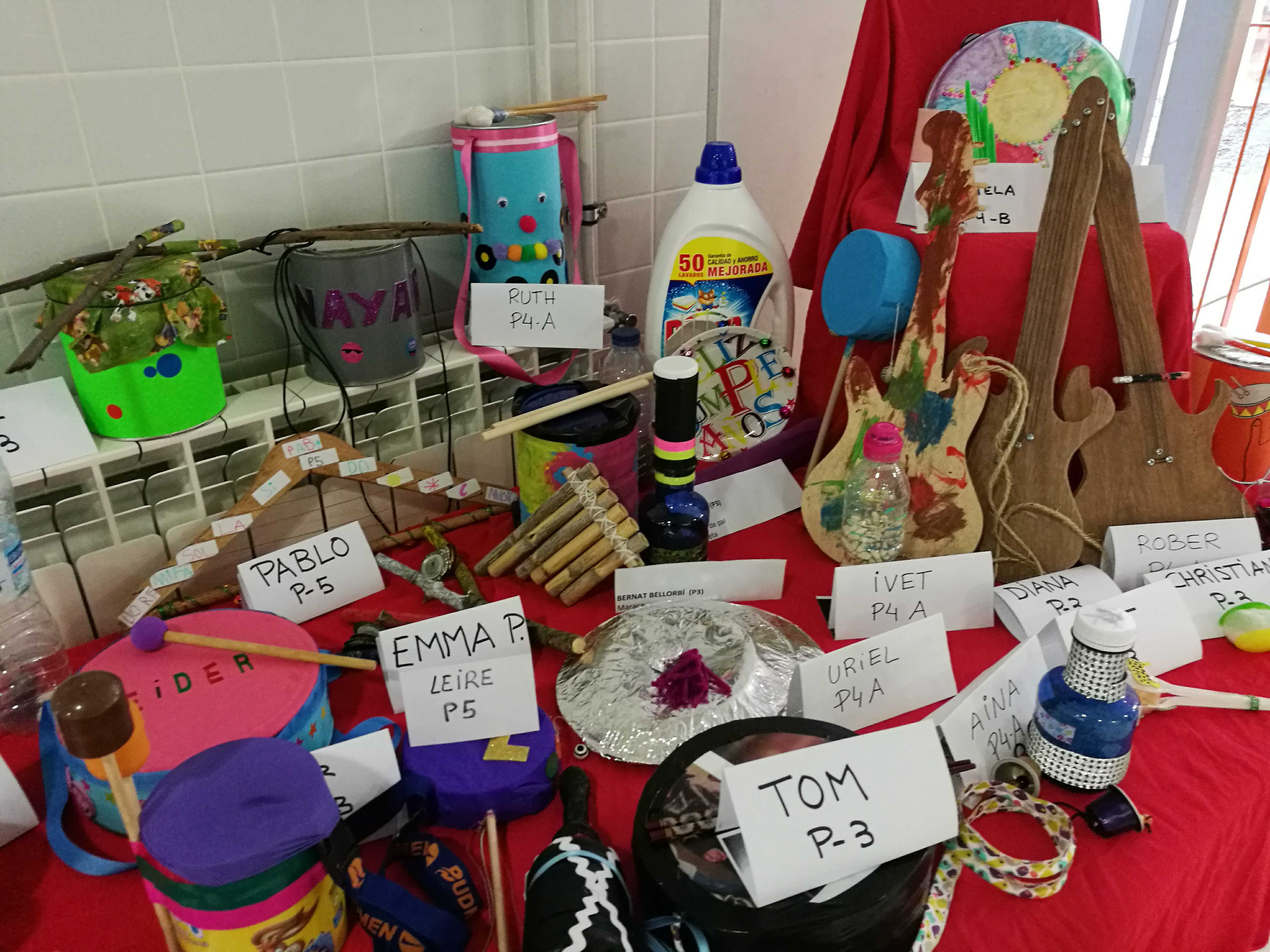 Al vestíbul hi ha exposats tots els instruments que han anat portant els nens i nenes. Són genials!