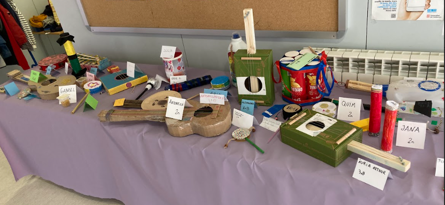 A més a més l’alumnat ha portat instruments creats a casa que podeu veure exposats al vestíbul fins divendres. Moltes gràcies famílies per la vostra col·laboració!![]()