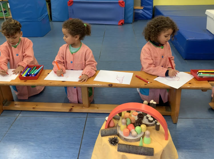 Durant aquest mes d’octubre les classes de EI3, EI4 i EI5 s’han guarnit de tardor. A cada classe hi ha un racó amb imatges d’aquesta estació, safates amb fulles, pinyes, castanyes, bolets… i contes.