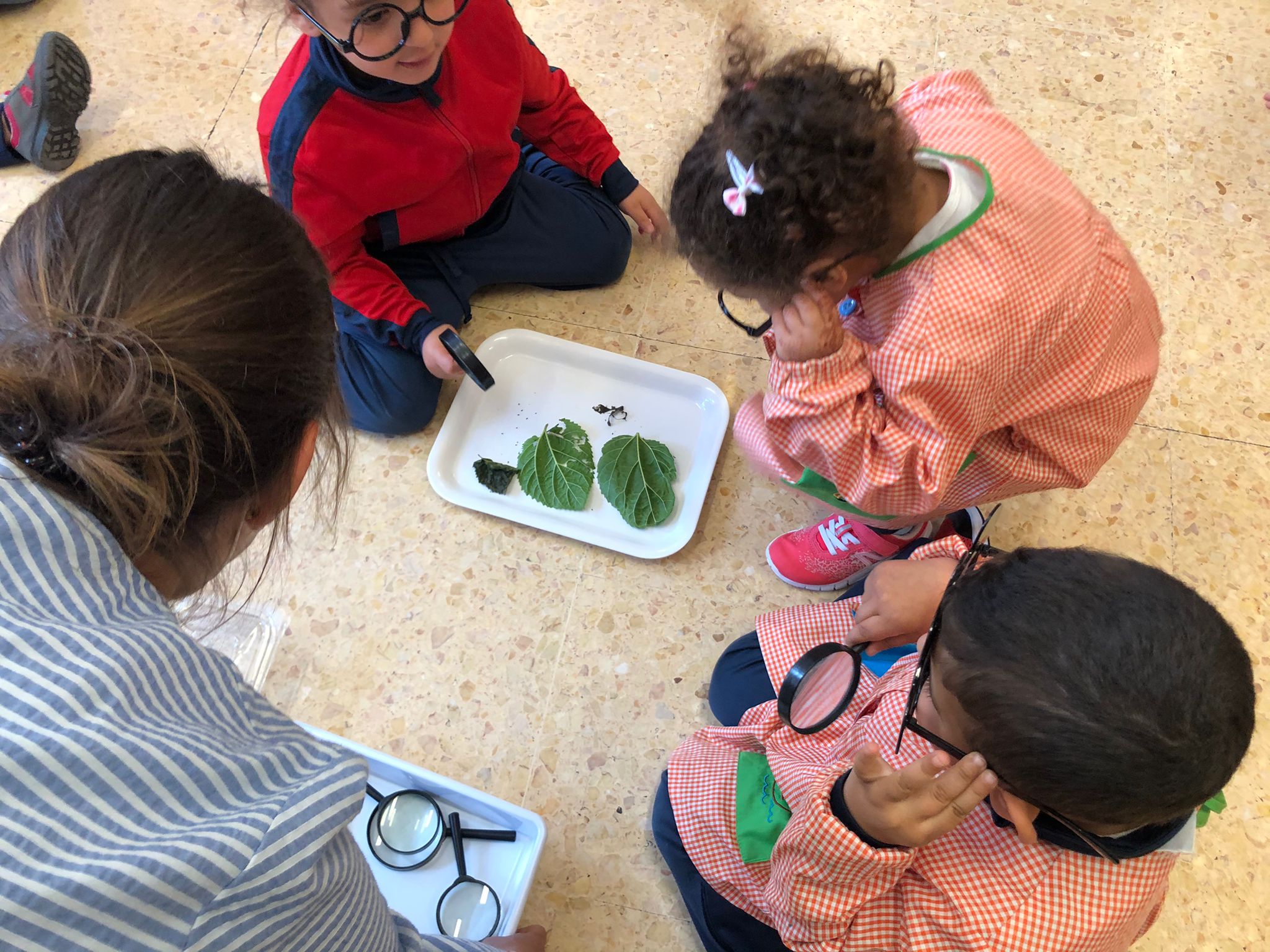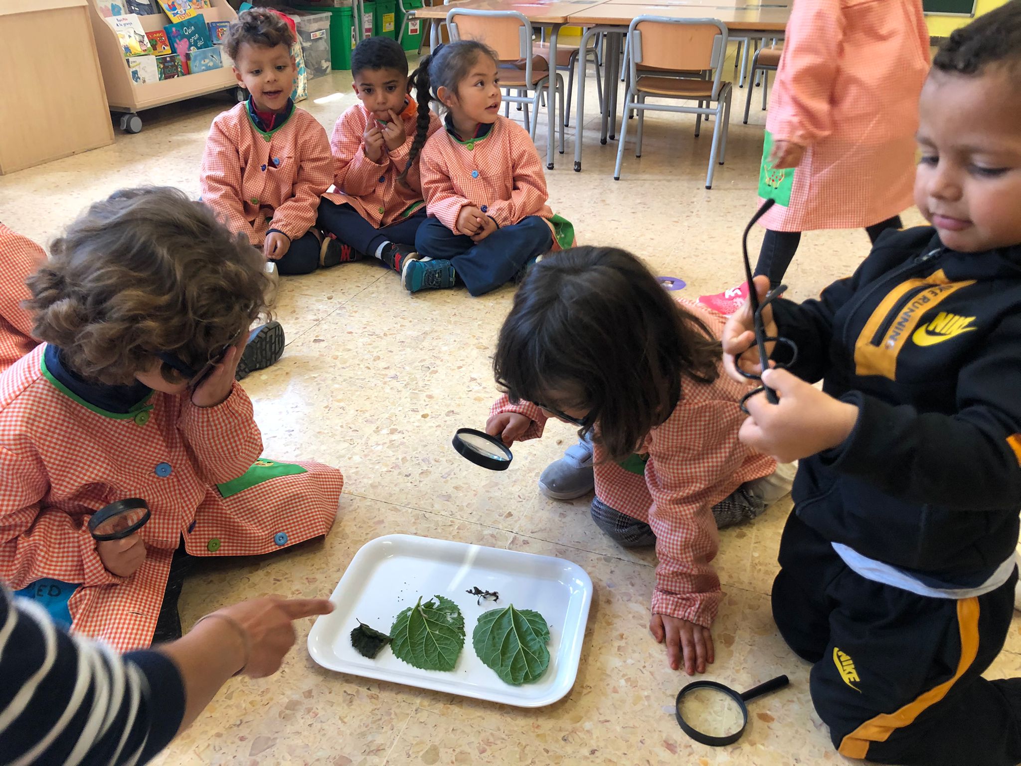 Us deixem un recull de fotos fent ciències a P3. Aquí observant cucs de seda que hem tingut a la classe durant molts dies i hem pogut veure el seu cicle vital (ou-cuc-crisàlide-papallona). També hem sentit el conte de l’erugueta goluda i hem observat els cucs i les crisàlides amb lupes i ulleres d’exploradors.