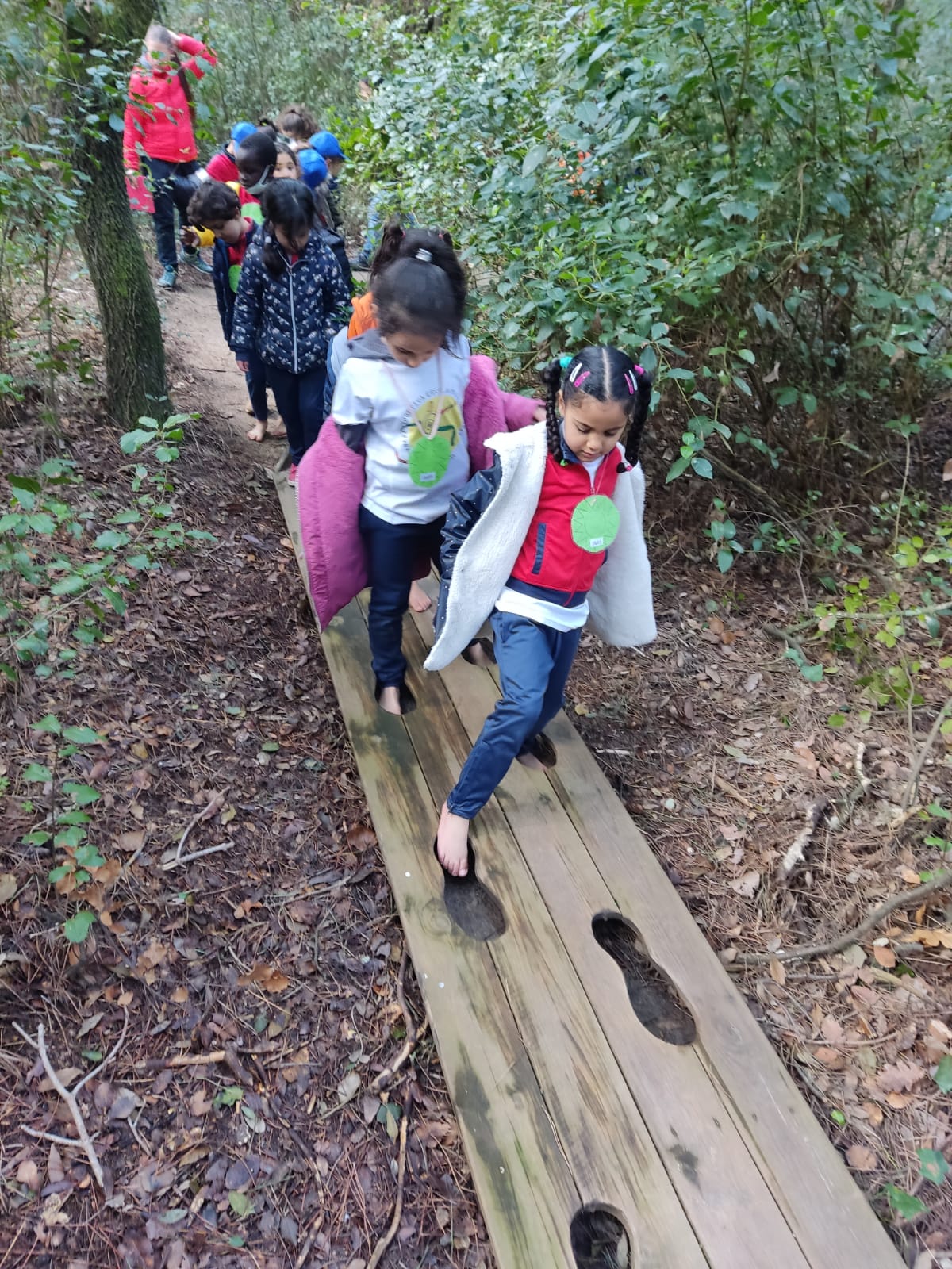 El camí sensorial l’havíem de fer descalços, però com que feia molt fred van ser pocs i poques els nens i nenes que es van atrevir. En el camí vam trobar diferents elements per descobrir els sentits: