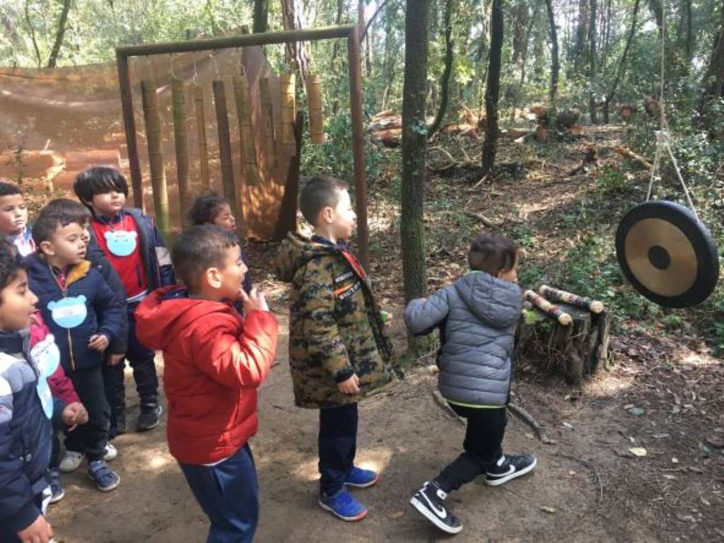 - Sentit del tacte: troncs per fer equilibris, pedres, sorra, caixes tancades per descobrir què hi havia a dins…