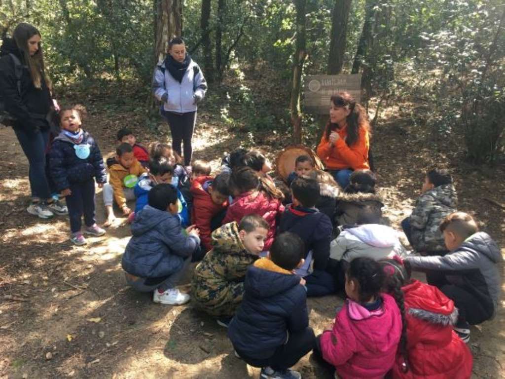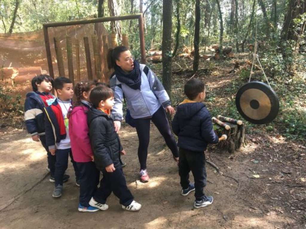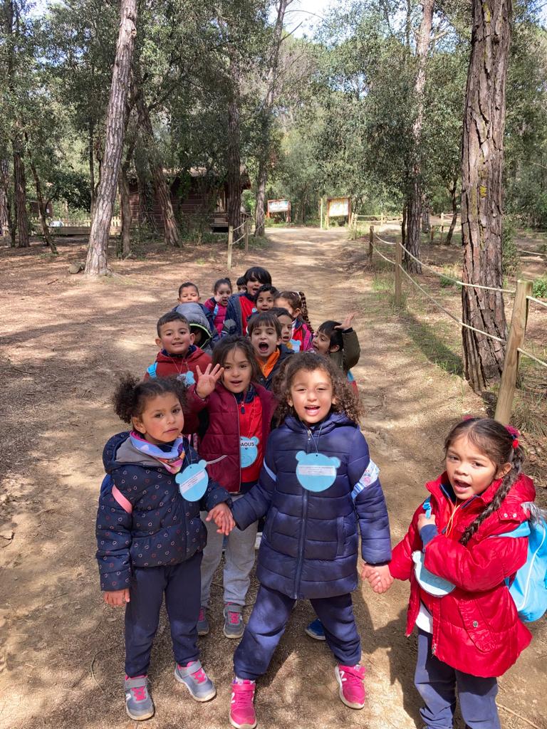 Els nens i nenes de P3 Sol i Lluna, P4 Estrelles i P5 Astronautes acompanyats per la classe de 1r vam anar a fer un camí sensorial a Dosrius, molt a prop de Mataró.