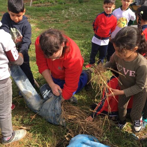 - A partir d’un joc de pistes vam trobar diferents robes per realitzar un espantaocells i, li vam posar de nom: Cowi Tandai!!