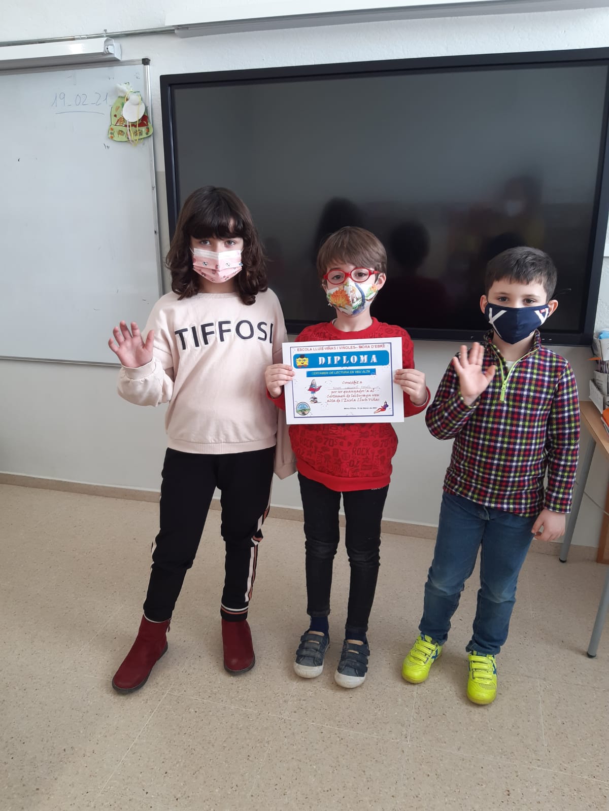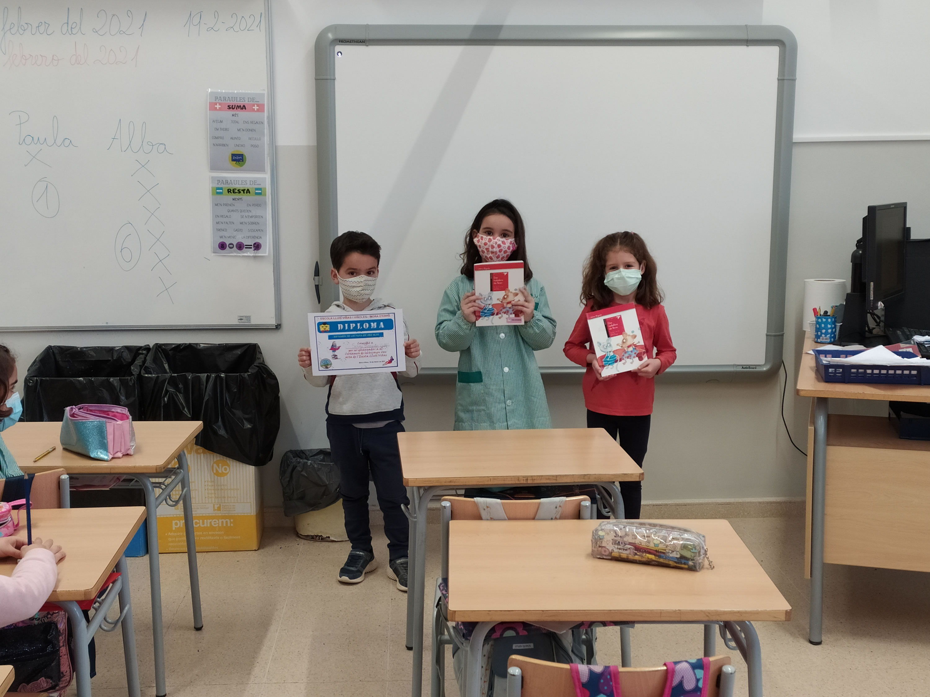 Els alumnes de de 1r a 3r, aquest curs, ho han fet a les seves aules. La COVID no ens ho ha permès fer a la sala d’actes tots junts.