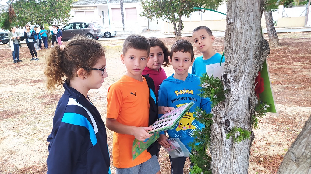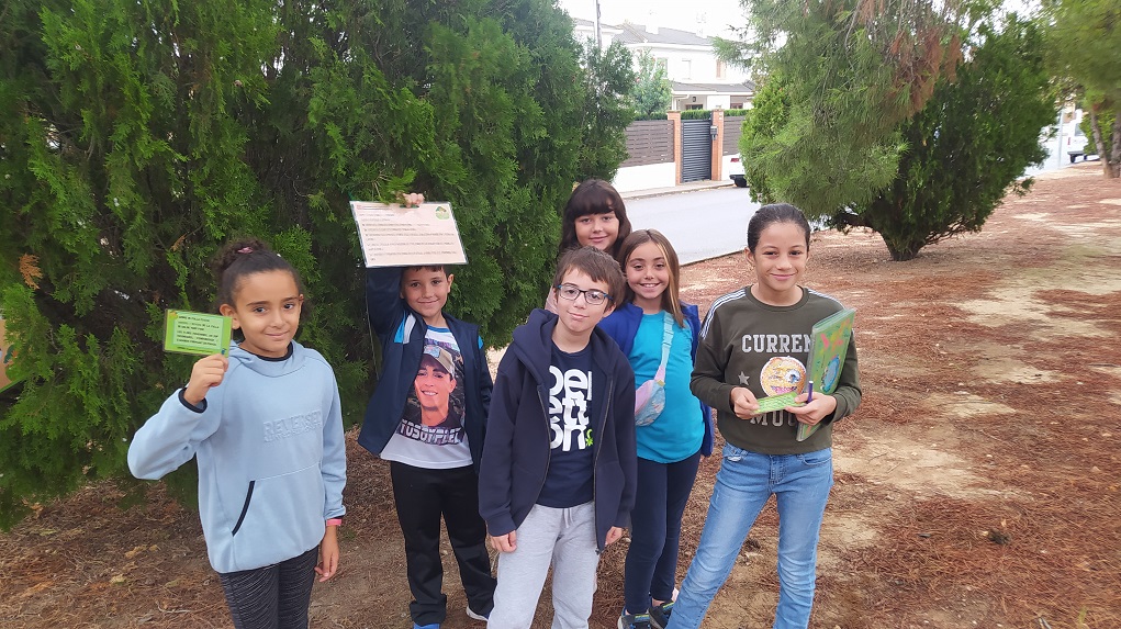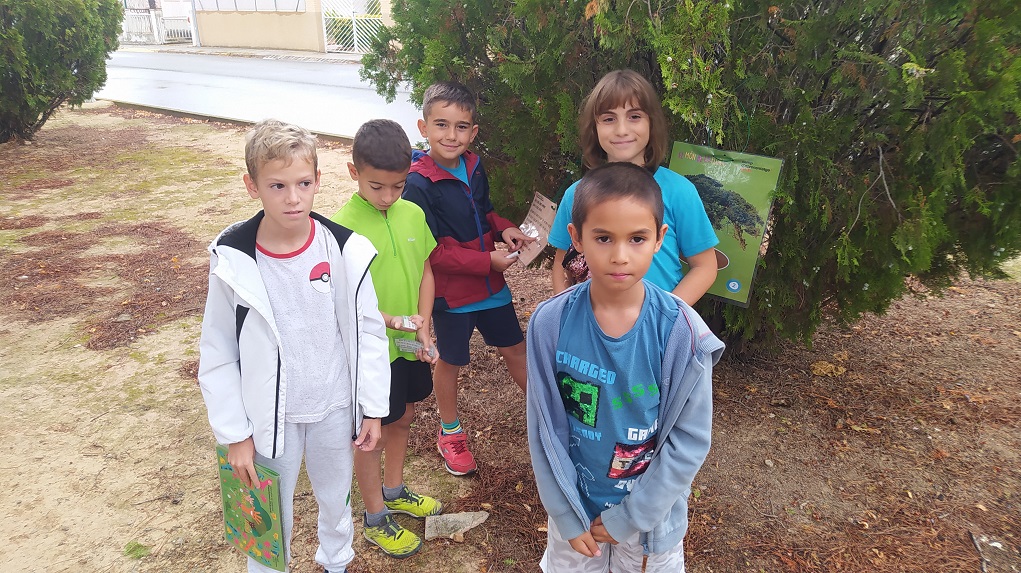 Després d’esmorzar ens vam apropar a la zona d’arbres de davant de la Residència (teníem previst anar a l’illa de Saurí però plovia a estones i volíem estar a prop del centre per a poder tornar-hi ràpidament). Allí els nens i nenes van organitzar-se per grups i van haver de desxifrar una sèrie d’enigmes que els proporcionaven informació de les plantes de l’entorn.
