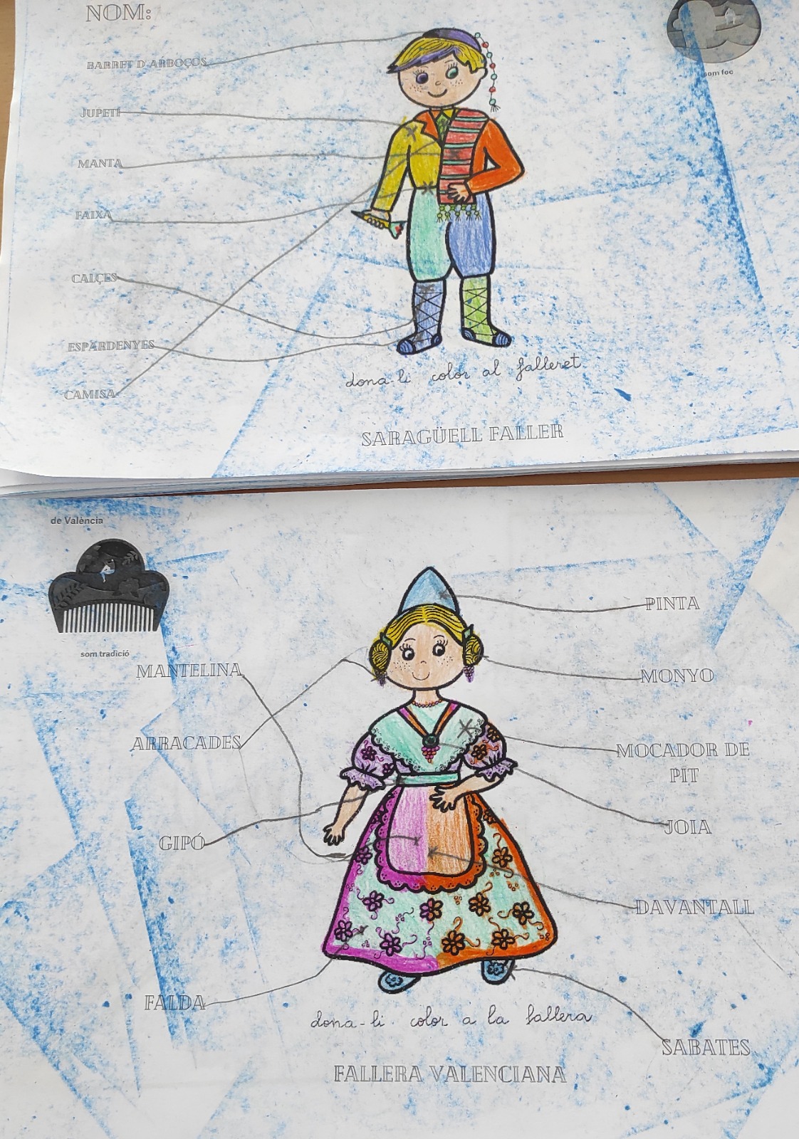 Durant la setmana cultural dedicada a la interculturalitat a la classe de segon A ens ha tocat treballar Espanya. El mestre Paco ens ha fet una xerrada sobre la festa de les Falles de València. Ens ha explicat moltes curiositats i hem pogut veure vídeos de la mascletà i dels ninots. També hem vist el museu on s’exposen els monuments que es salven cada any de la cremà. Ens ha agradat molt pintar els vestits típics de faller i fallera.