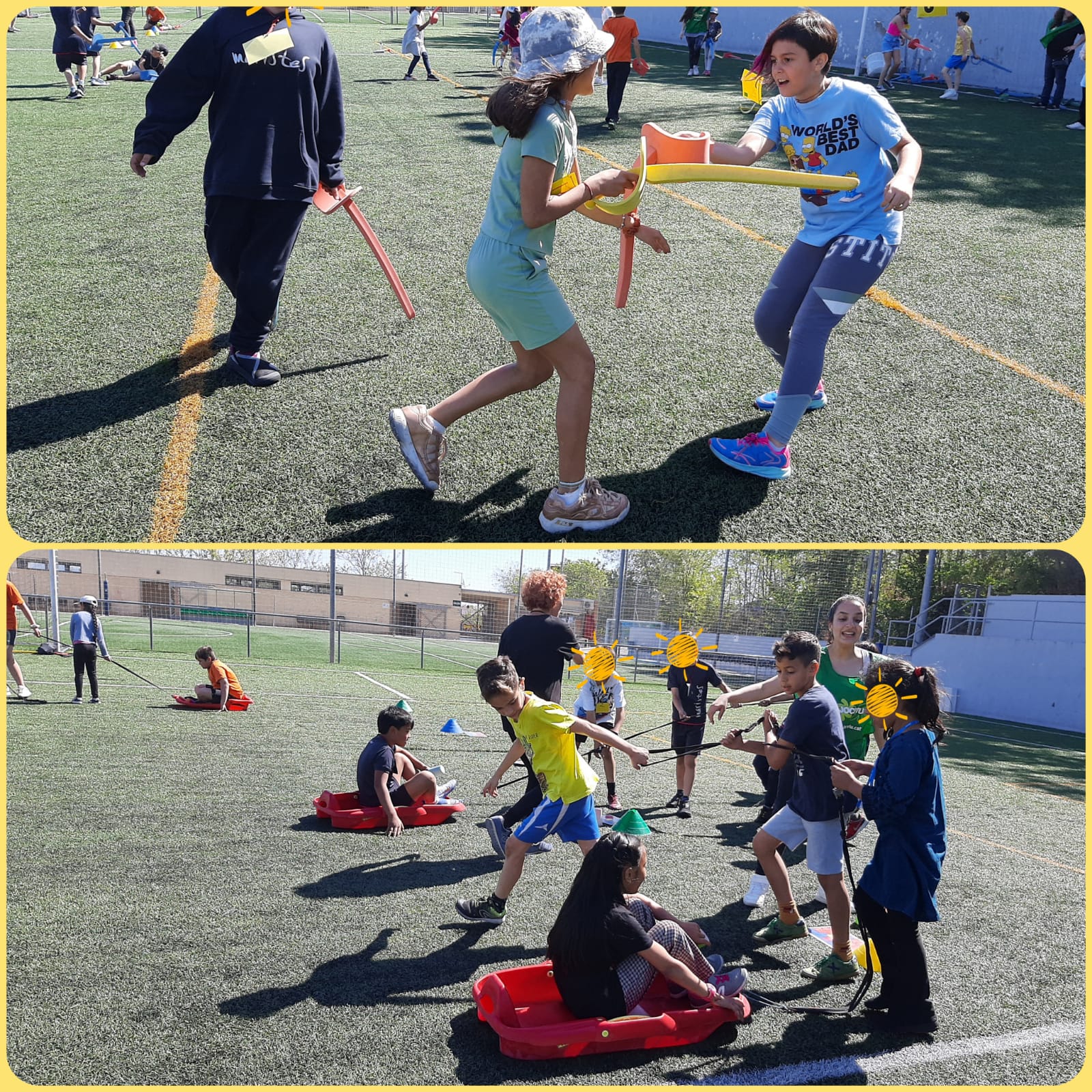 Al llarg del matí han realitzat nou activitats organitzades per estacions, com ara el paraques, esgrima amb espasses de foam i piràmides humanes. L’objectiu era jugar i cooperar amb tots els membres de cada grup provinents de diferents escoles. Cada estació de la gimcana tenia una duració de deu minuts aproximadament que el monitor dirigia i vetllava pel bon funcionament.