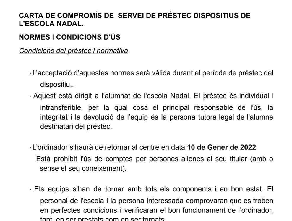 Carta de compromís de servei de préstec de dispositius de l’Escola Nadal Llegeix més »