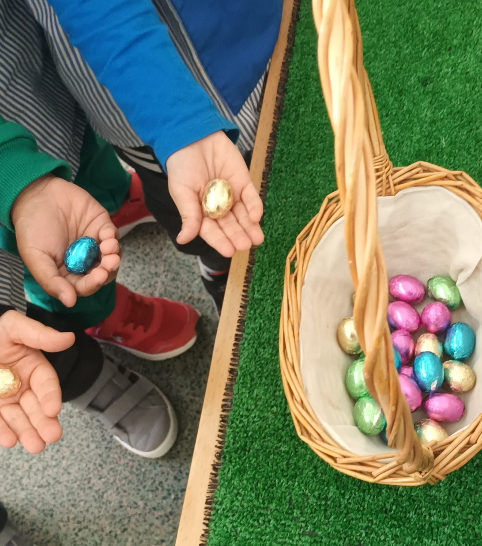 A la tarda, la diversió ha continuat amb la recerca dels ous de xocolata. Els infants han participat amb entusiasme en aquesta activitat, buscant els ous amagats per diferents espais de l’escola i vivint una jornada plena d’alegria i emoció.