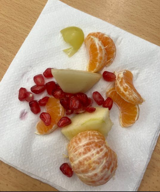 Amb molta curiositat, els infants han tastat diferents fruites com la magrana, el raïm, la pera, la poma o la mandarina. Ha estat una experiència plena de sensacions i aprenentatges que hem volgut recollir amb algunes fotografies perquè pugueu veure com l’han viscut.
