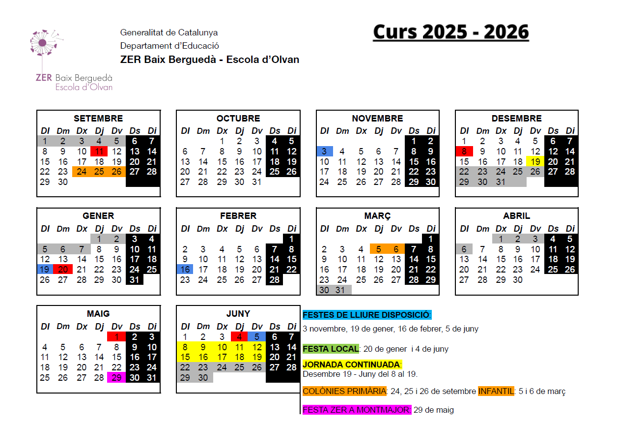 L’horari lectiu del centre és: