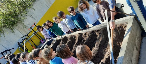 El Lluís ens ha ensenyat com plantar tomaqueres a l’hort.