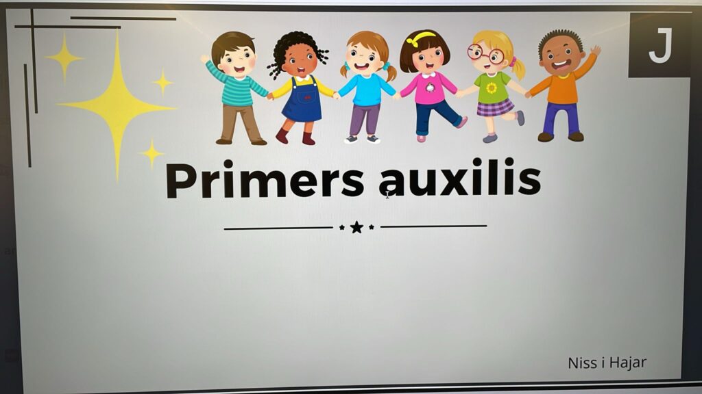 Avui divendres, a P4, han vingut la Niss i l’Hajar que estan estudiant infermeria per fer-nos una xerrada sobre Primers auxilis. Després d’explicar-nos què cal fer en cas de veure que algú es fa mal i no hi ha un adult a prop, hem pogut posar en pràctica tot allò que ens han ensenyat anteriorment. El temps ens ha passat volant i hem pogut aprendre moltes coses que no sabiem.