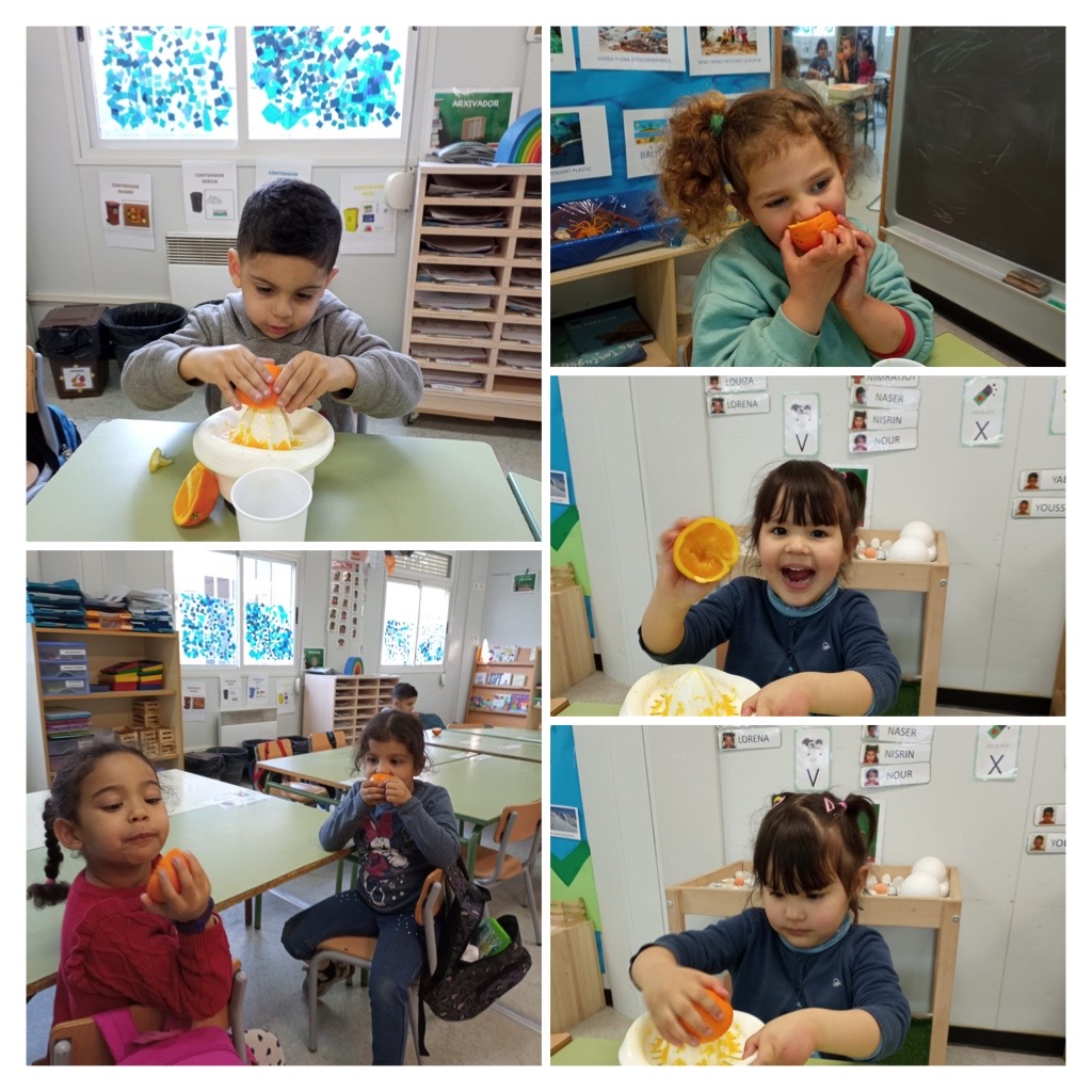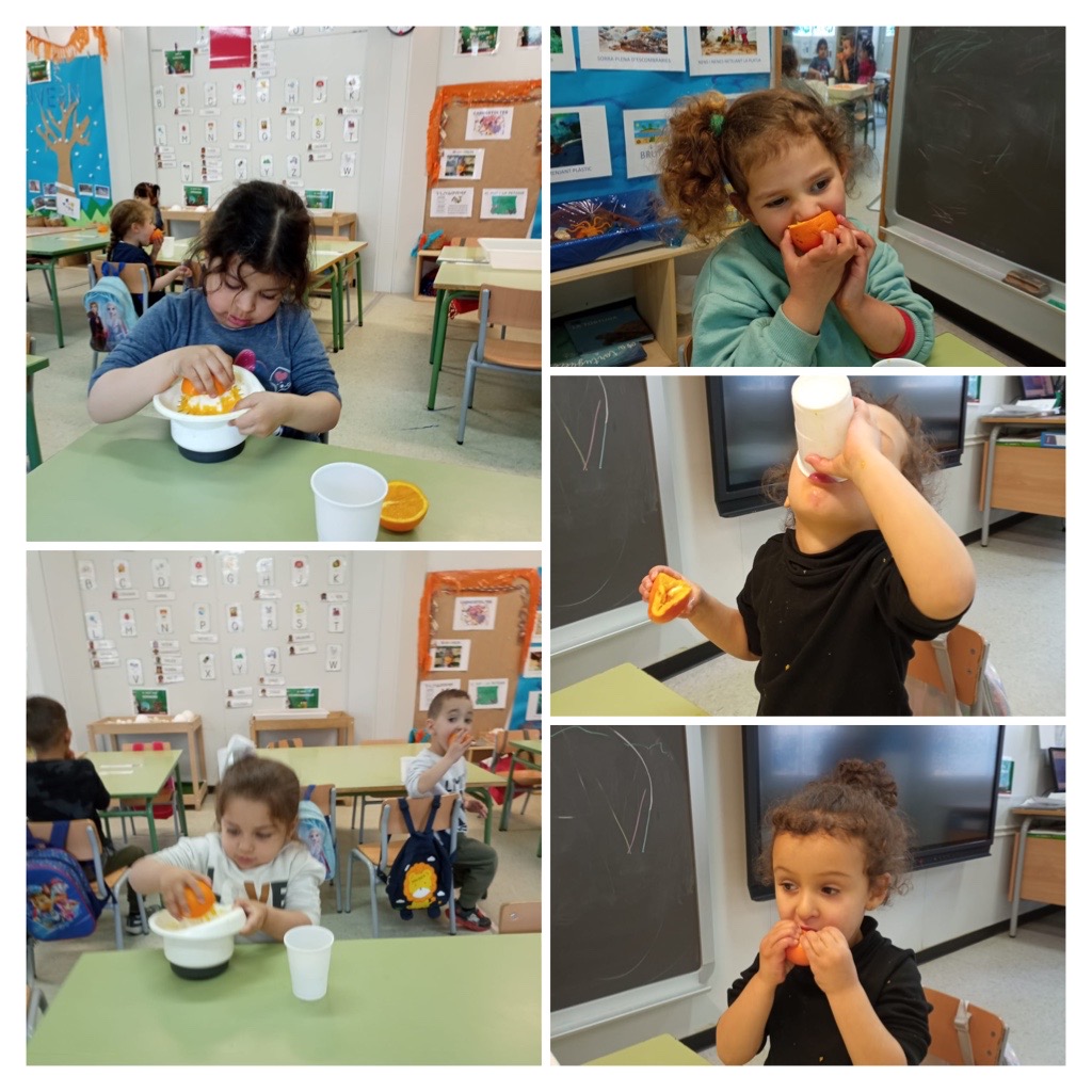 EI3: HEM FET UN SUC DE TARONJA BONÍSSIM E. Infantil03/03/22 Hola famílies, Ens han portat fruita a l’escola ja que és molt saludable i cal que tots en mengem cada dia. Com que teníem moltes taronges hem decidit fer-ne suc, ens ha sortit molt bo i ens ho hem passat molt bé fent-lo. Aquí en teniu les imatges: