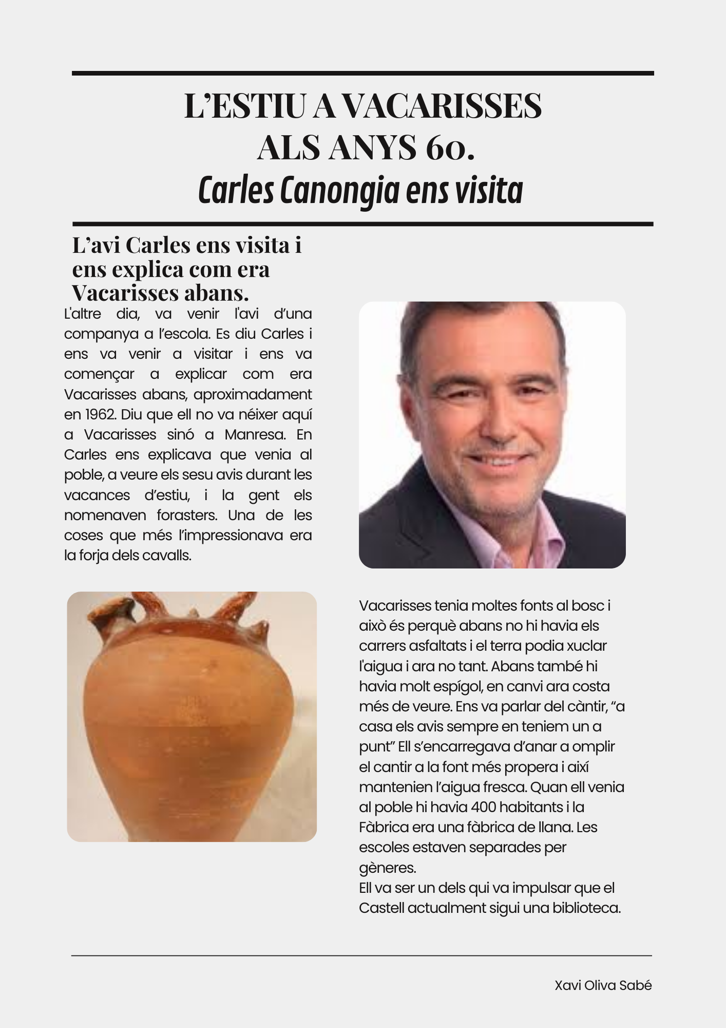 L’estiu a Vacarisses… ens visita l’avi de l’Abril. Feu un comentari / Per Esther Expósito / 5 de desembre de 2024 / General / 6è, Primària